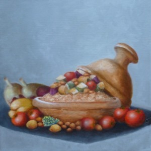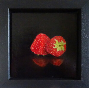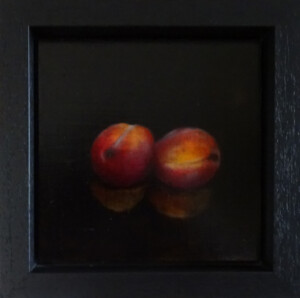 Een serie van 9 fruit schilderijtjes, apart te kopen of als serie. Per schilderijtje € 150 – als serie van 9 €100 per schilderij. Grootte van de werkjes zijn 19,5 cm bij 19,5 cm.